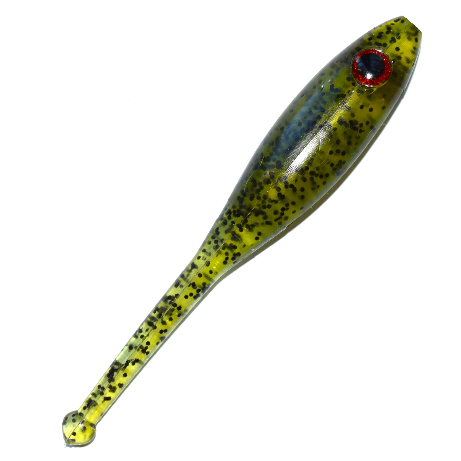 The SLICK is an aerodynamic soft plastic jerk bait designed to target larger fish and cover more water through longer casts. It produces a highly erratic baitfish movement when jerked or twitched. It performs well with a weightless hook in shallow water flats and freshwater lakes or rivers. With a weighted hook, The SLICK sinks faster to reach lower depths of 8 to 12 ft. Its slow sinking glide profile makes for an irresistible presentation. Recommended hooks include Owner 4/0 Beast (weighted or unweighted), TroKar TK170-3/0-1/8oz, or Eye Strike Redfish Eye 4/0 (1/8 to 1/2 oz).